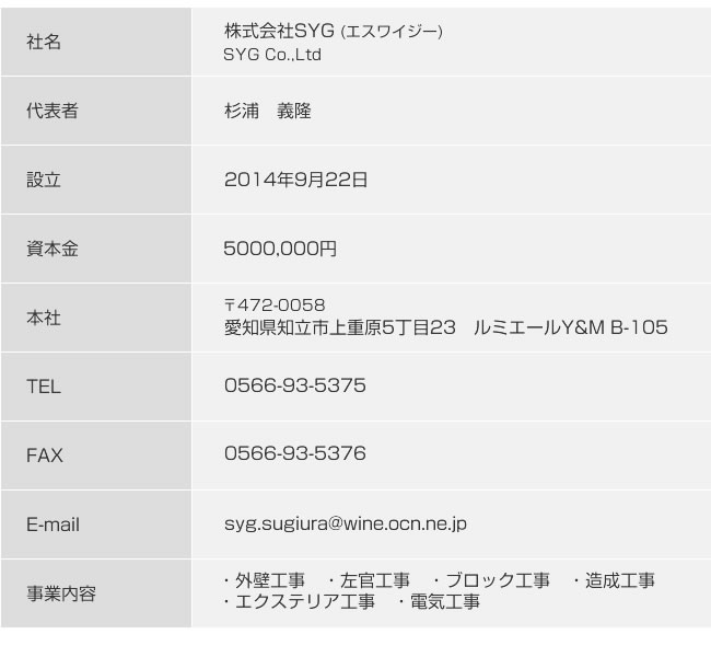 愛知県知立市のエクステリア(外構工事・左官工事・造園)の施工・デザインの株式会社SYG(エスワイジー)